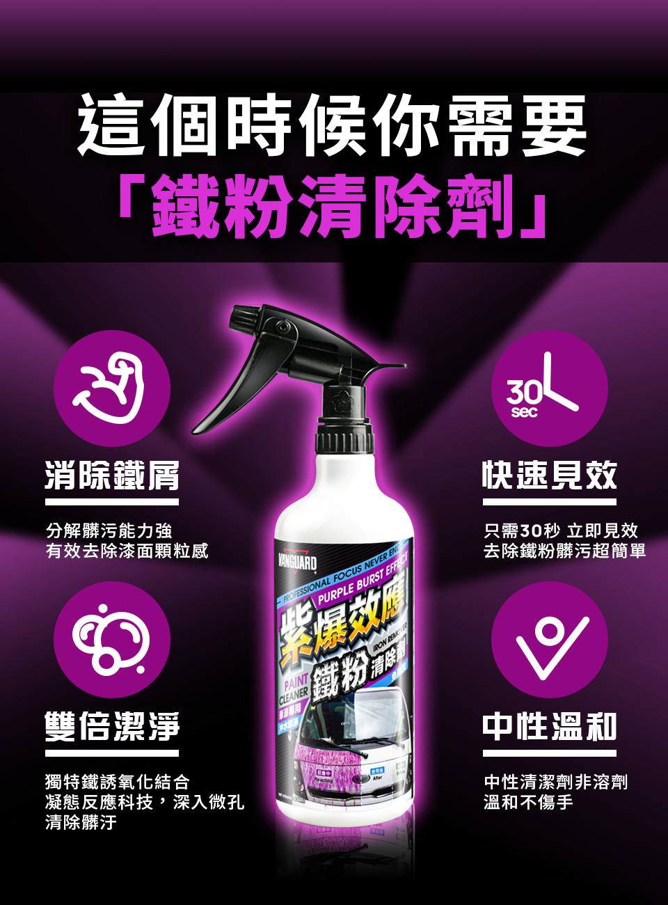 VANGUARD紫爆效應鐵粉清除劑 (車漆用) 鐵粉去除劑