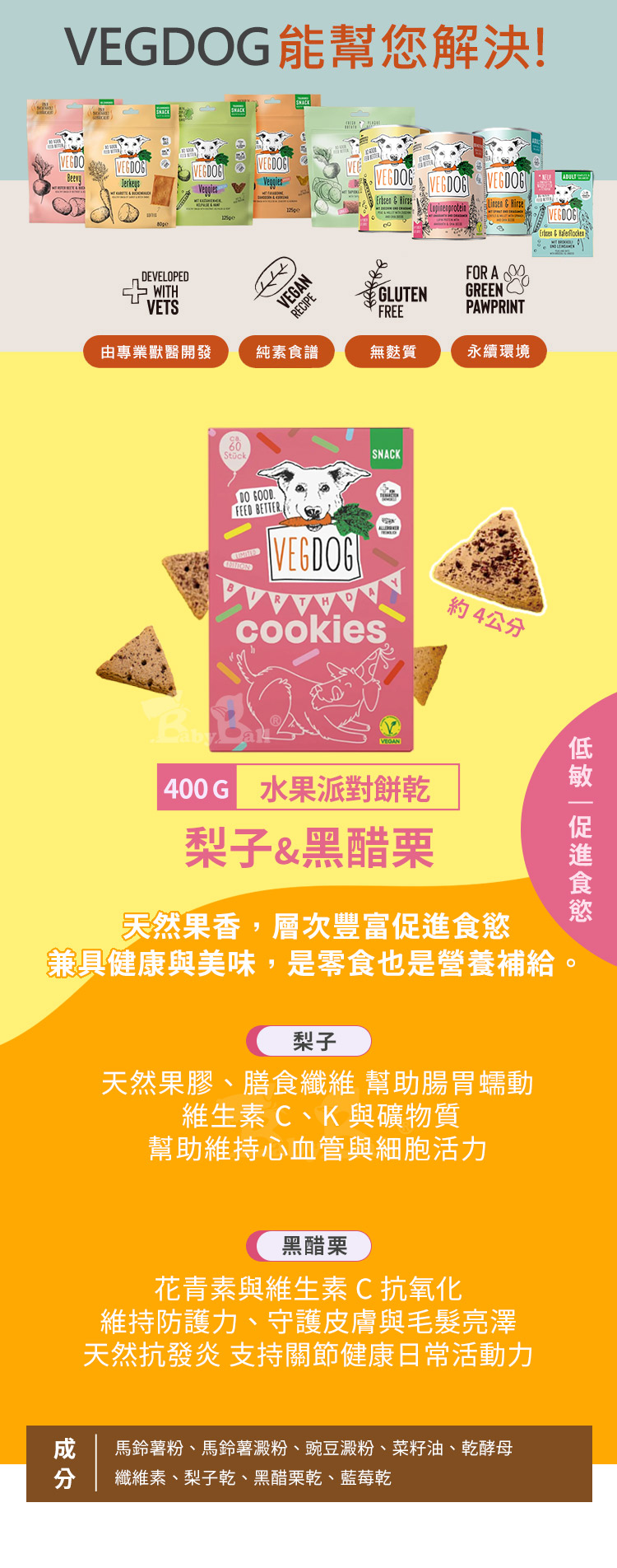 【倆寶貝精品館】VEGDOG德國蔬狗 水果派對餅乾-梨子&黑醋栗 400g
