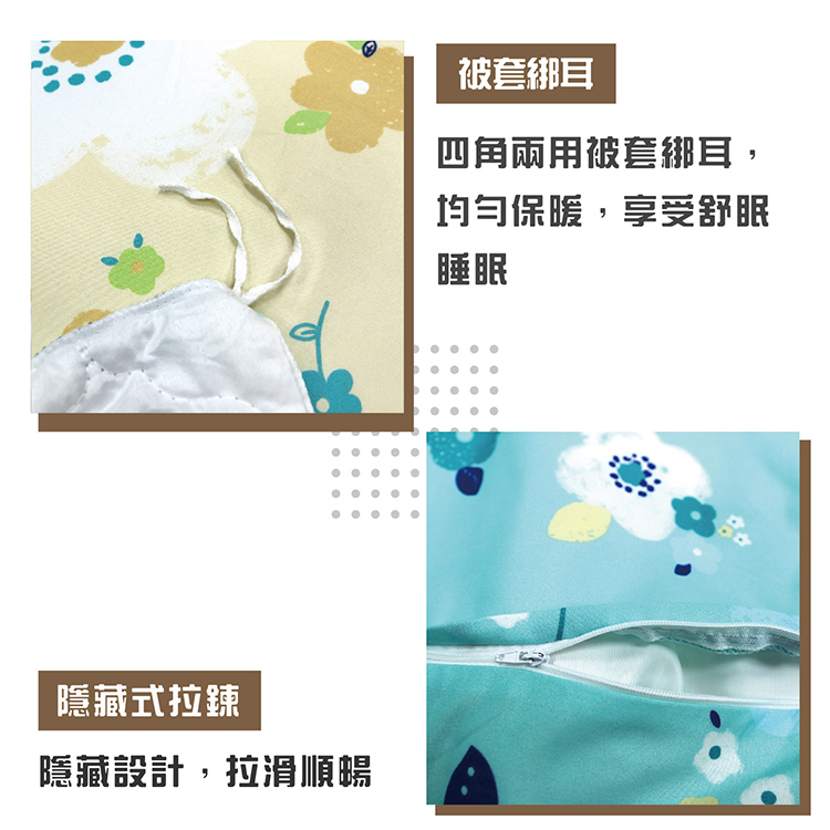 ★內容件數與尺寸: 雙人床包x1件-5x6.2尺(150x186cm) 鋪棉兩用被*1件-6x7尺_(180x210cm) 枕套x2個(48x75cm)
