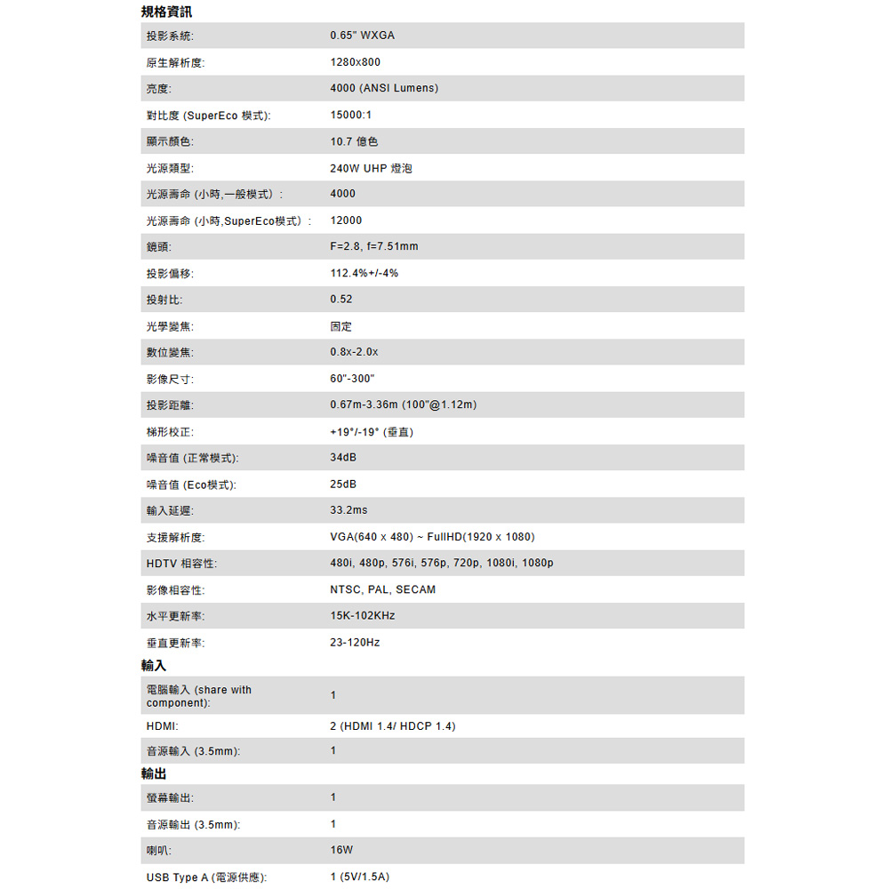 -0.52 的短焦比設計縮短投影距離,占用更少的空間