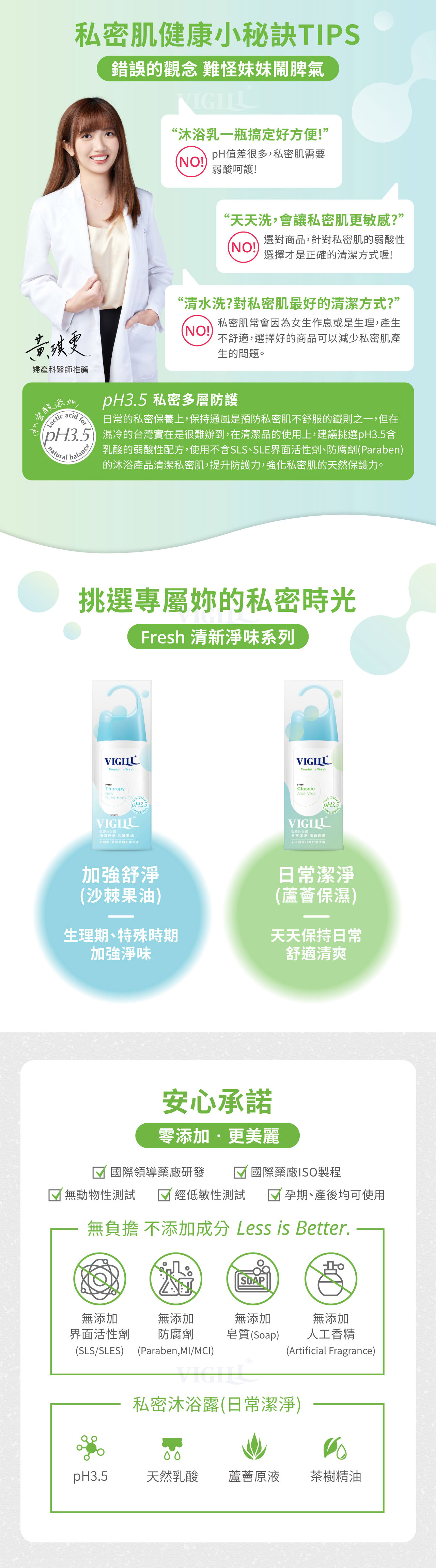 [幸一生醫] VIGILL婦潔 私密沐浴露(日常潔淨)220ml+日常潔淨沐浴露補充包