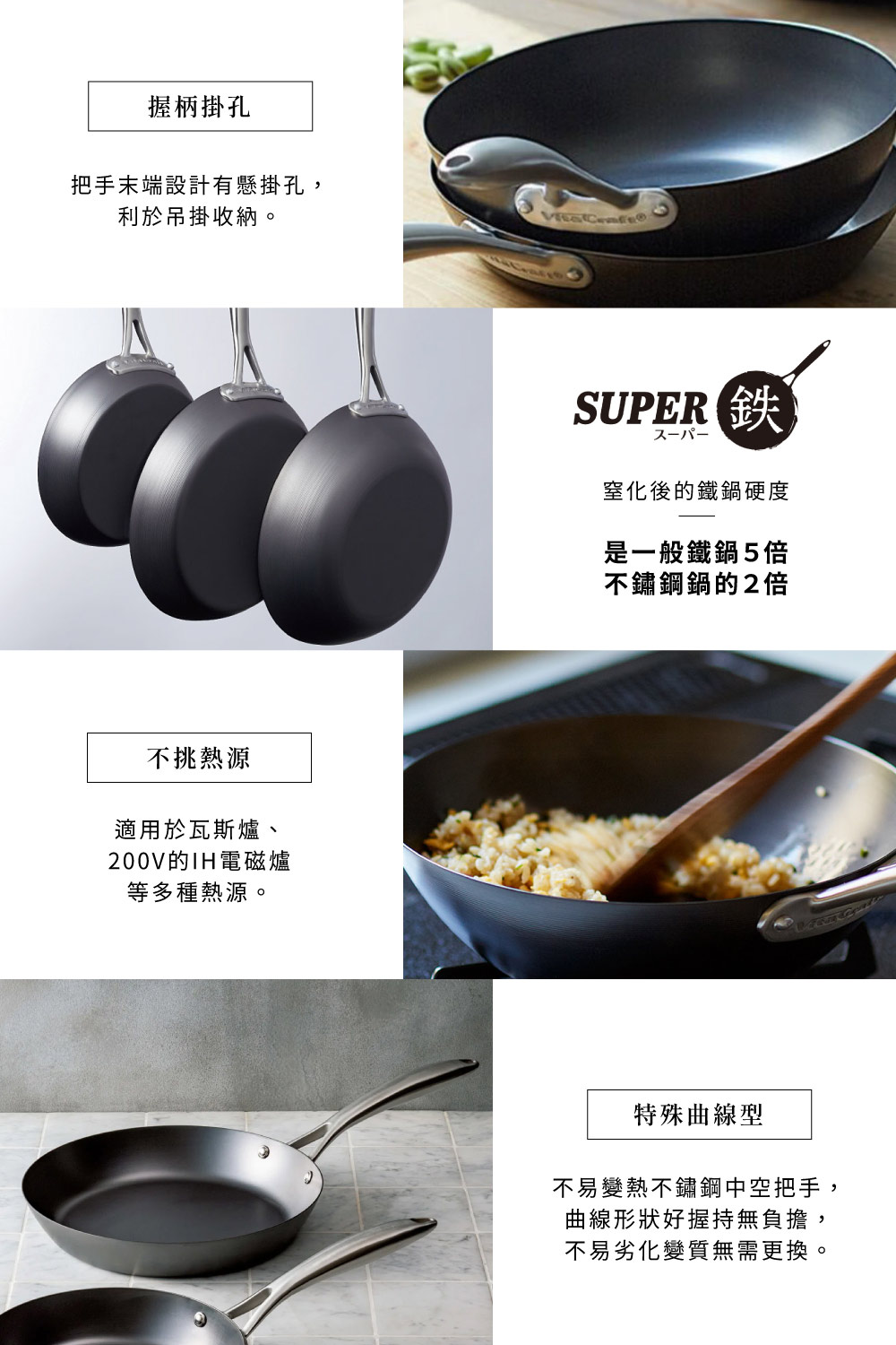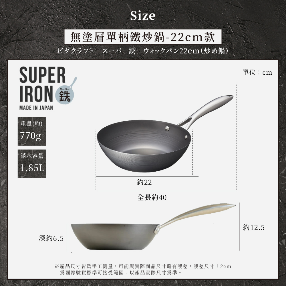 【vitacraft】日本製窒化鐵 無塗層單柄鐵炒鍋 22cm(Super Iron系列)
