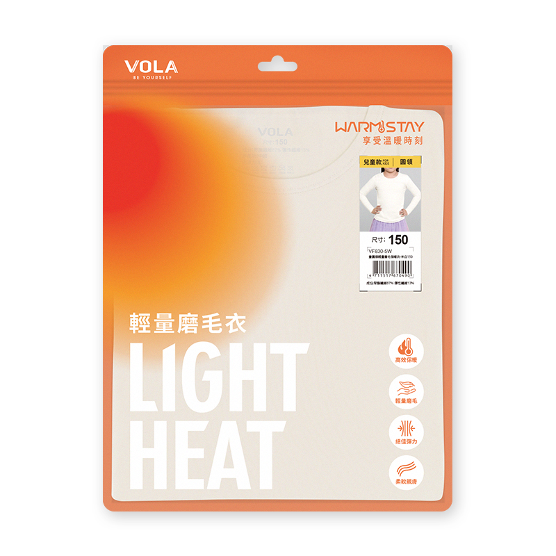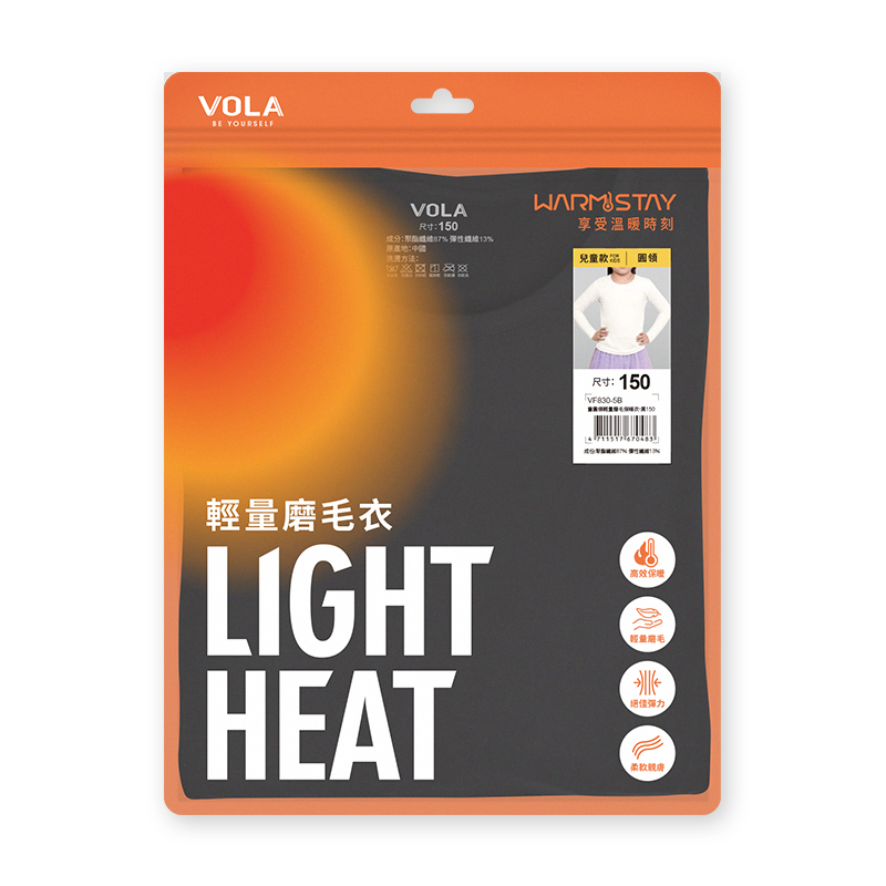 VOLA童圓領輕量磨毛保暖衣-黑/米白150cm(顏色隨機出貨)