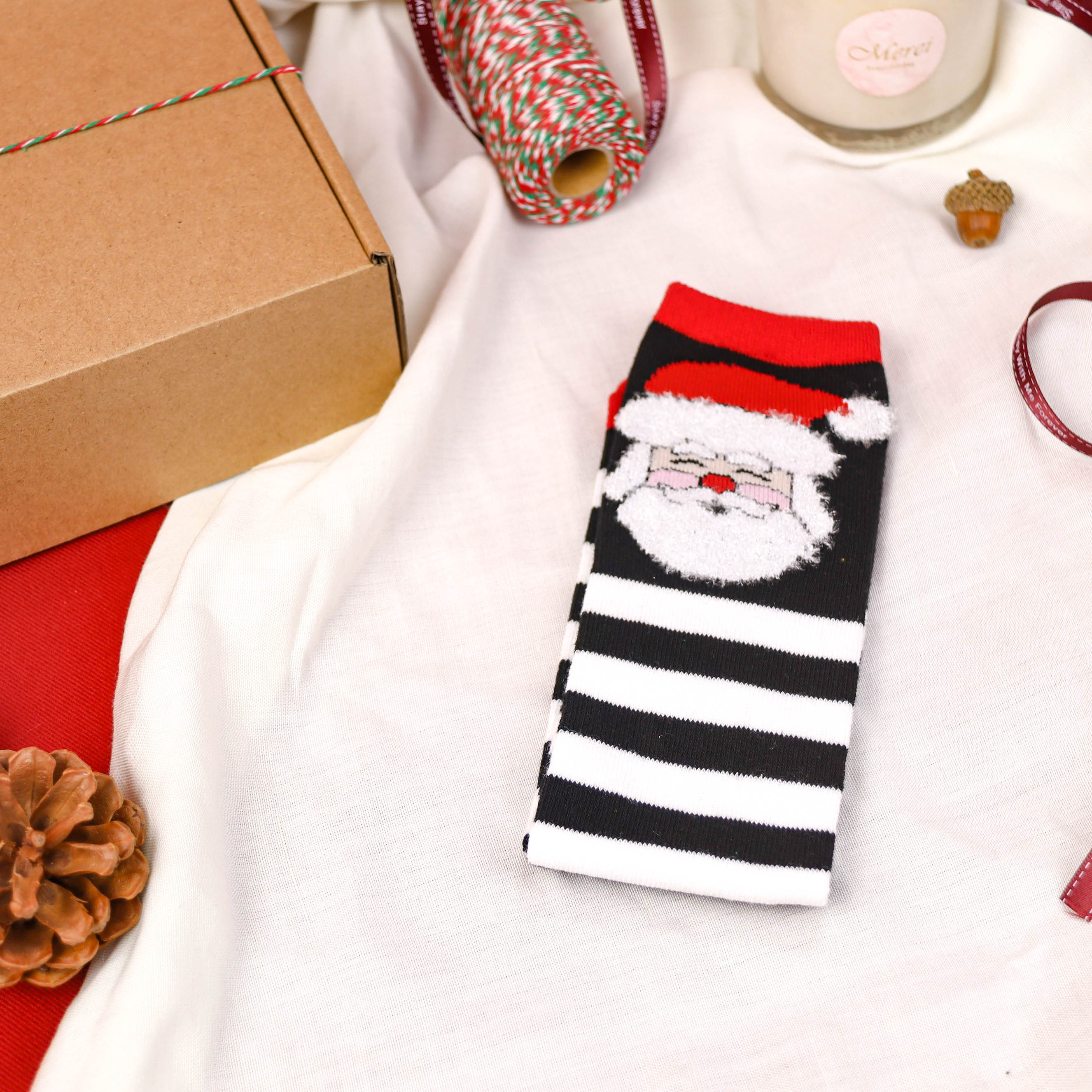 【台灣製】聖誕節主題襪 長襪-聖誕老人黑 棉質 卡通襪 男襪 女襪 童襪
