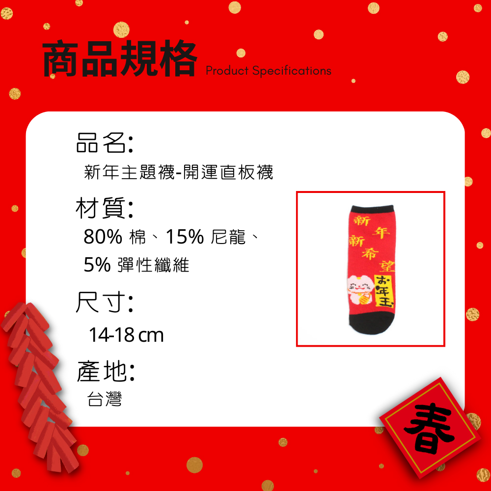【台灣製】新年開運襪 (兒童) 過年好運襪 招財襪 可當紅包袋-新年新希望