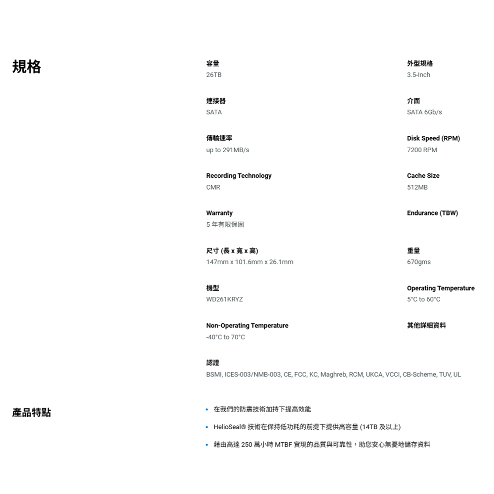 昌運監視器 WD金標 WD261KRYZ 26TB 3.5吋企業級硬碟