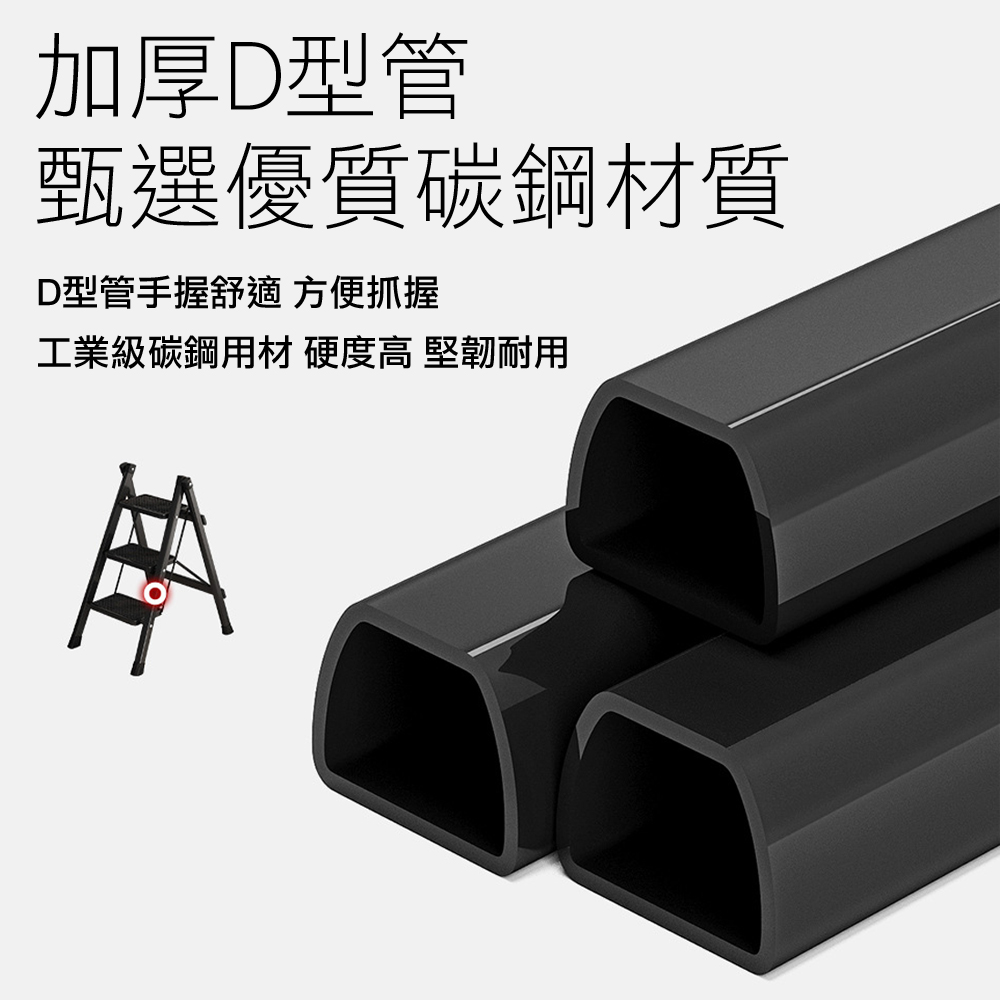 【WE CHAMP】碳鋼二階折疊梯-黑(人字梯 梯子 摺疊梯 工作梯)