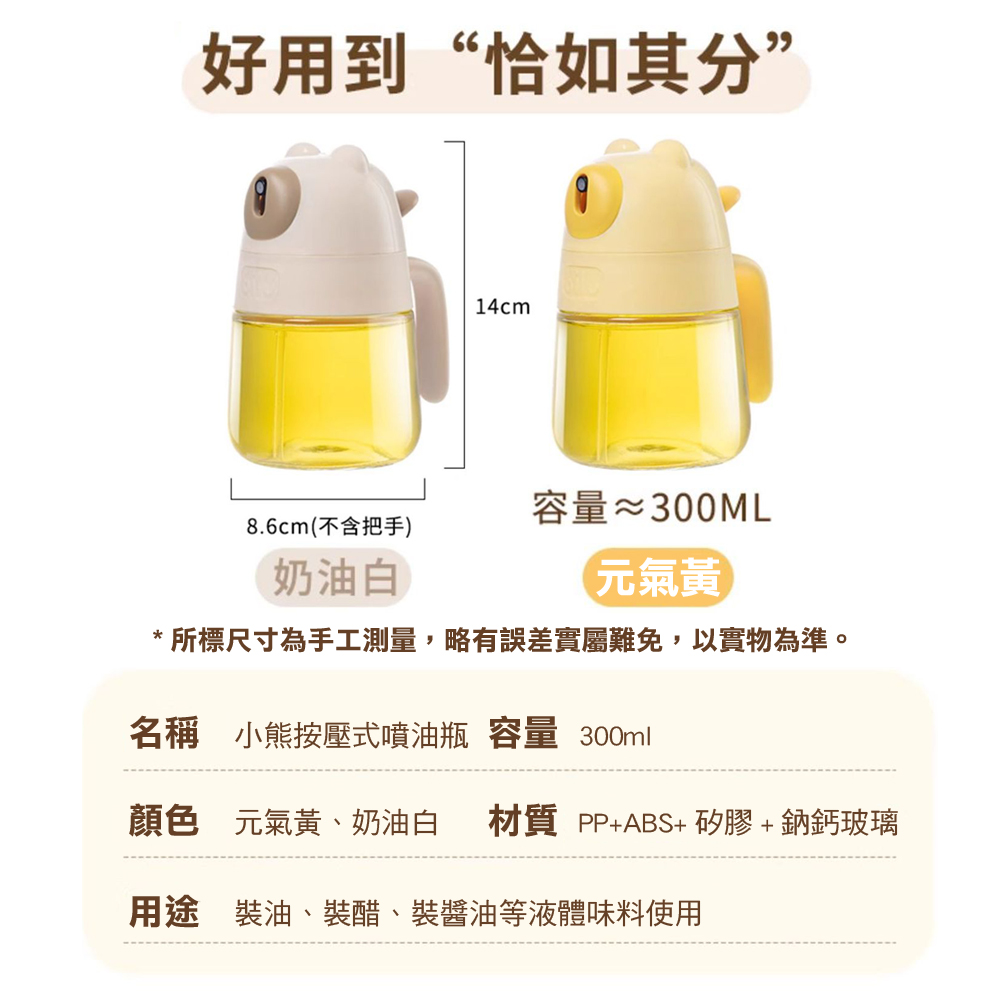 【WE CHAMP】小熊按壓式噴油瓶-300ML(噴油瓶 調料罐 噴霧油瓶)