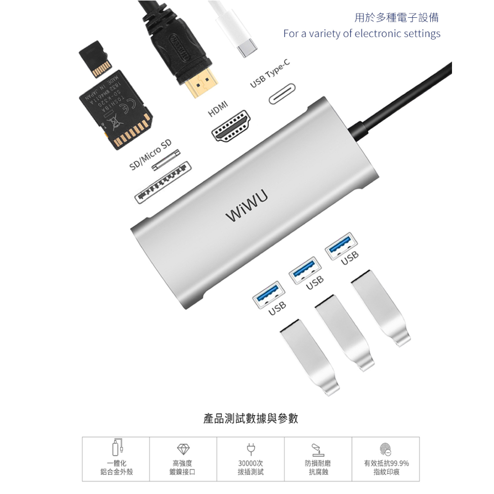 【WiWU】Alpha系列 USB-C HUB 七合一多功能集線器731HP