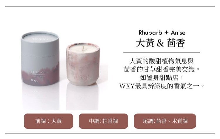 ■規格:品名:wxy Studio2蠟燭-大黃 & 茴香成分:100%大豆蠟、精油容量:170g, 6oz尺寸:直徑 7 cm商品使用時間:大約30-35小時用途:除臭、空氣清新、居家擺設、可重複使用容器產地:英國手工製作■注意事項1.使用蠟燭時,請勿靠近易燃物。2.置於陰涼乾燥處,避免陽光曝曬3.如商品接觸皮膚後出現異常,請諮詢醫生。4.存放與使用在兒童和寵物接觸不到的地方。4.存放與使用在兒童和寵物接觸不到的地方。