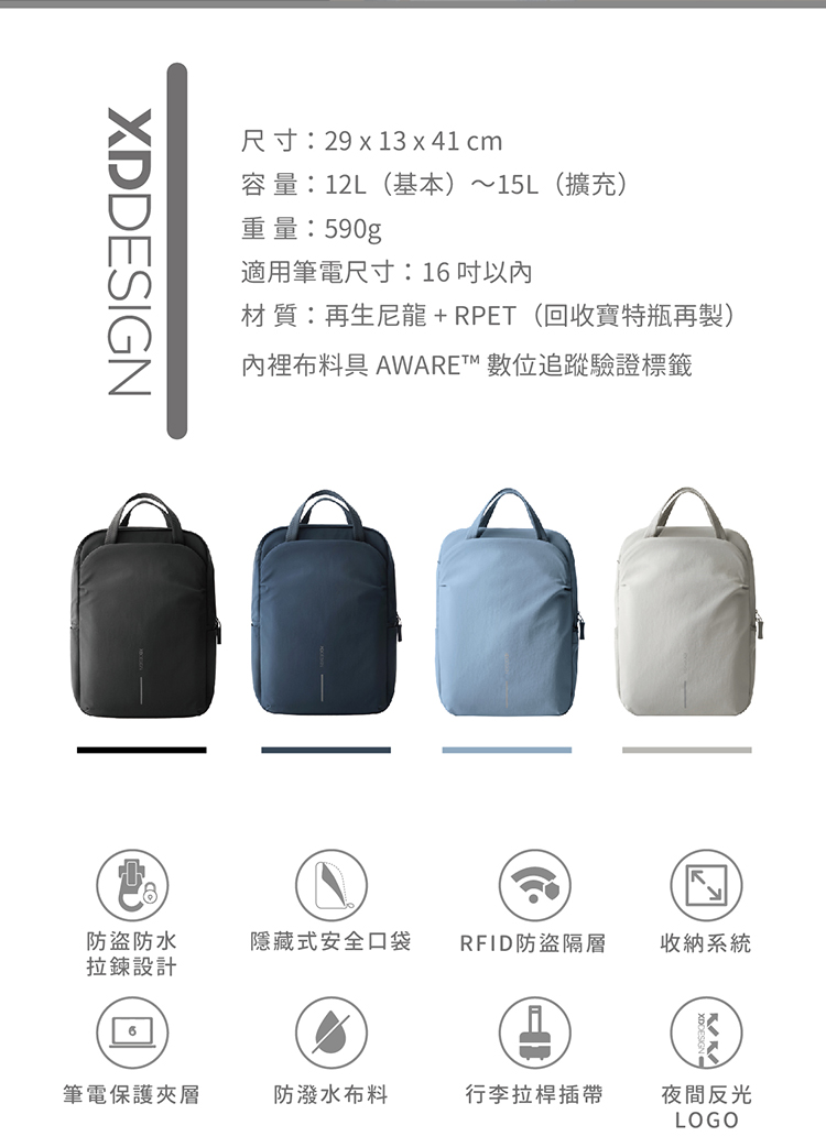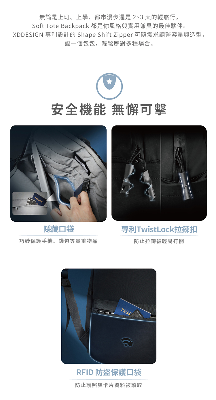 包裝內容物:XDDESIGN Soft Tote 托特防盜後背包*1