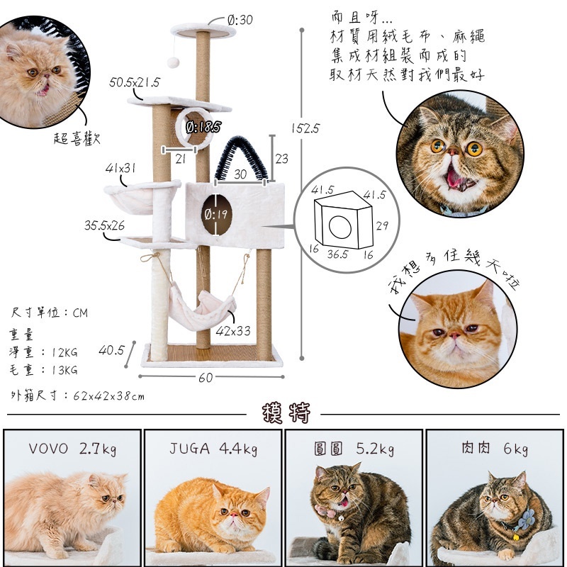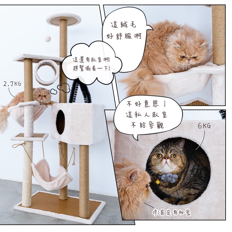【Y HOUSE】貓跳台/貓爬架/粗麻繩柱/大型貓窩/貓別墅-三景二室