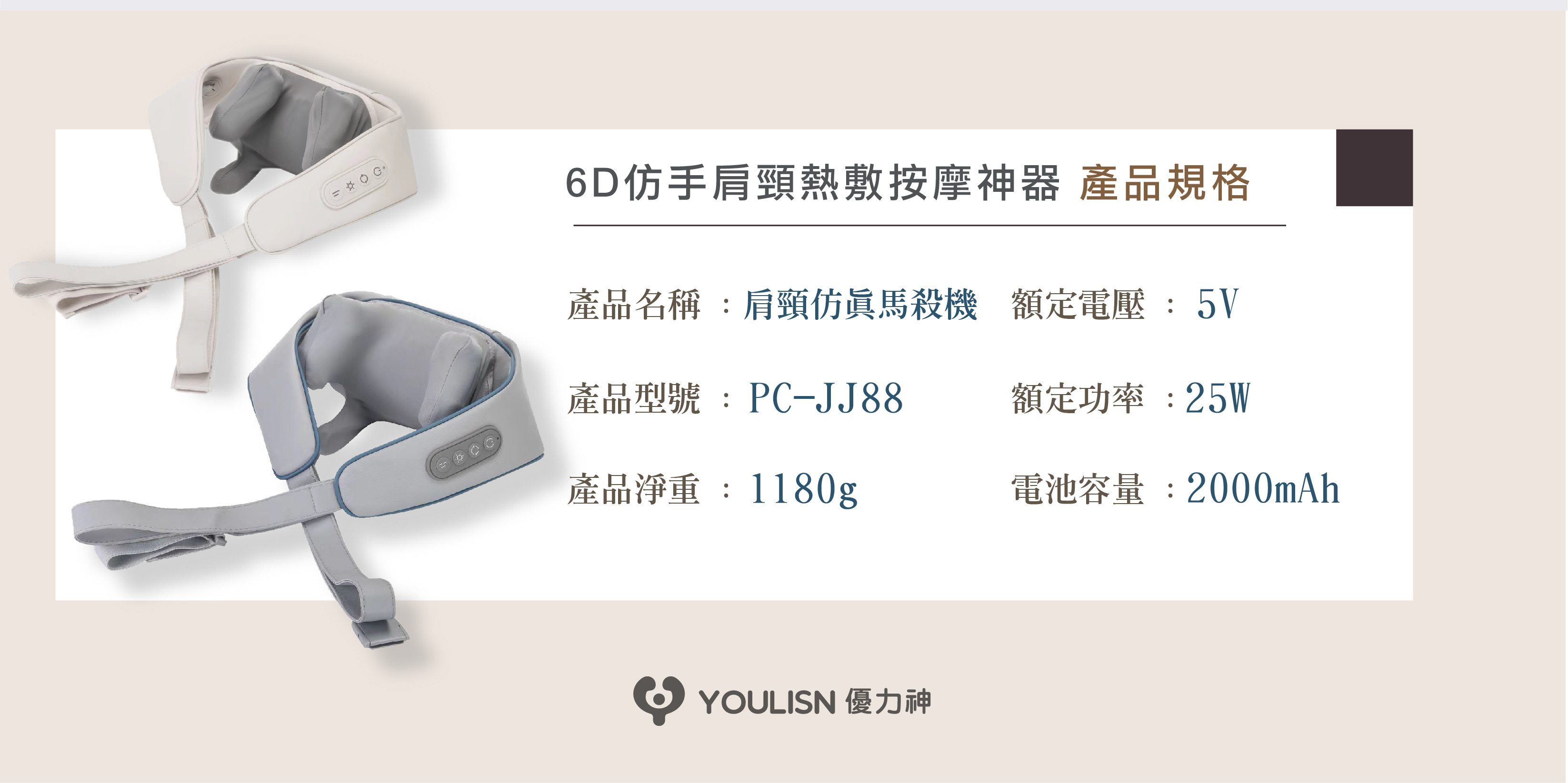 【 YOULISN優力神】 無線6D肩頸按摩神器-星空白 (電動按摩/揉捏/肩頸/按摩機USB充電/穴位揉捏/仿真按摩/熱敷)