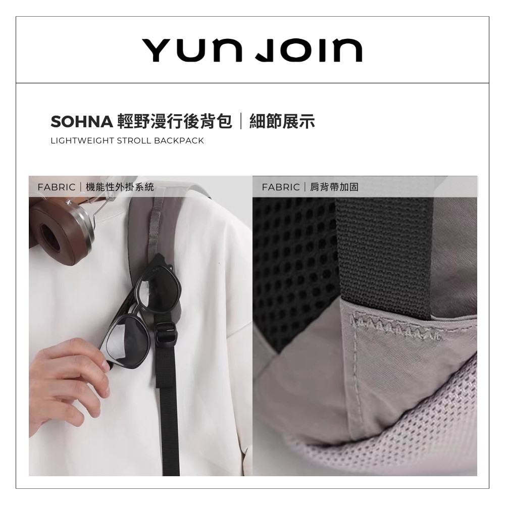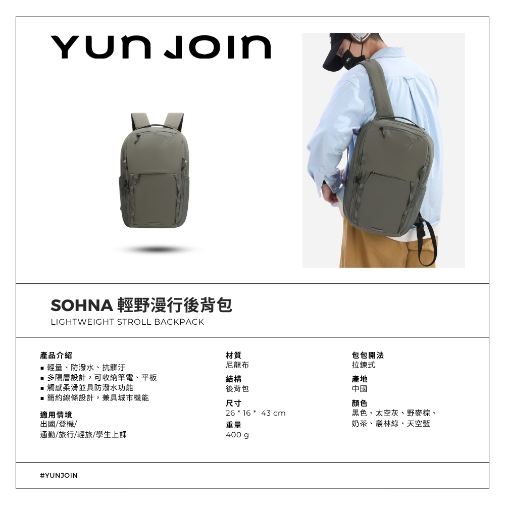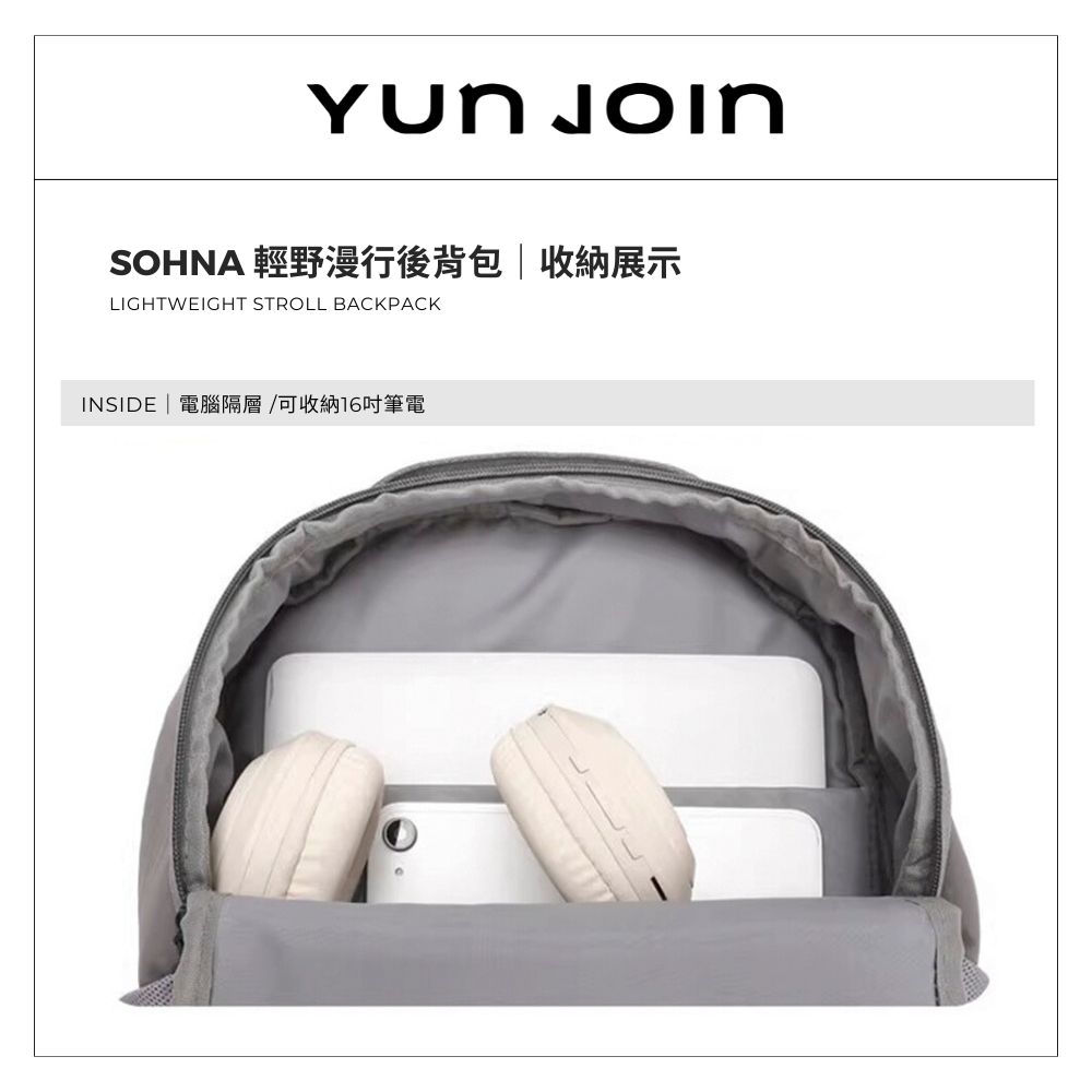 【YUNJOIN】Sohna 輕野漫行後背包|韓版大容量 輕量設計 通勤/商務/旅行/健行 筆電收納 多隔層 可插行李箱