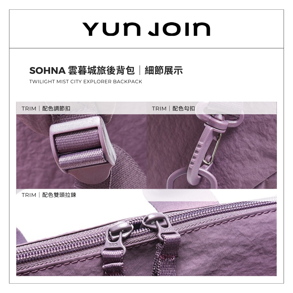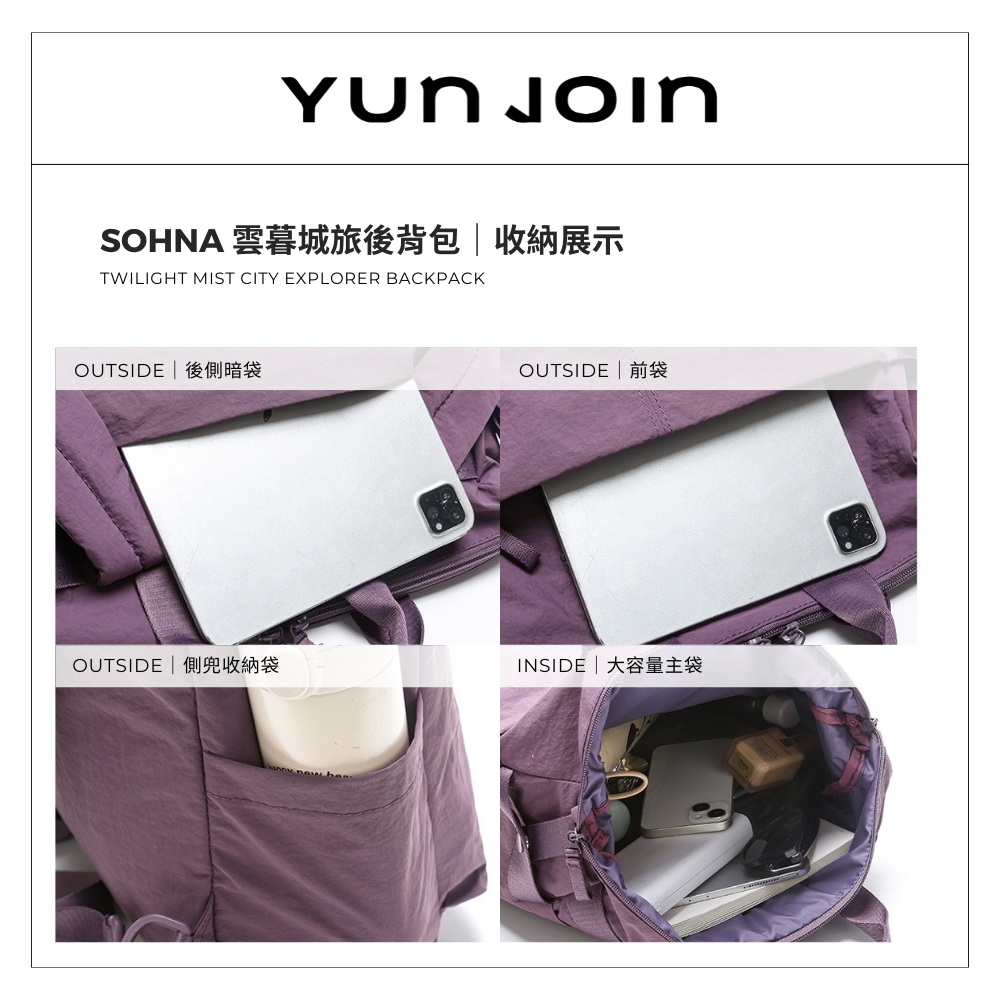 【YUNJOIN】Sohna 雲暮城旅後背包 輕量防潑水 筆電收納 多層收納袋設計 插行李箱拉桿|中性日韓風