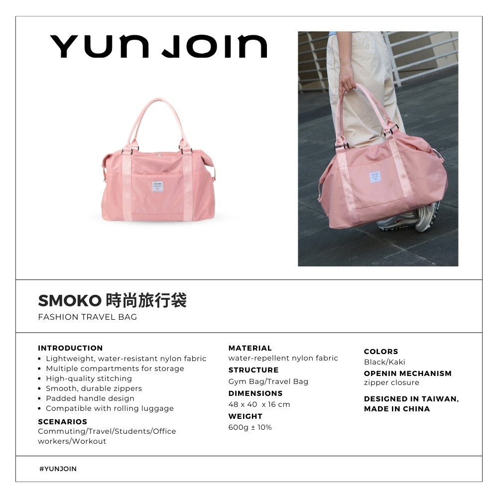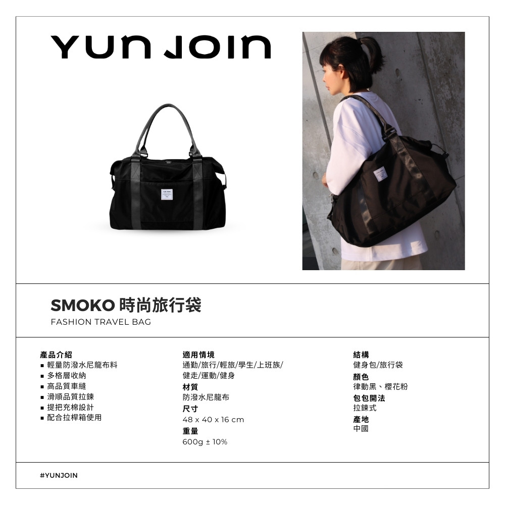 【YUN JOIN】Smoko 時尚旅行袋-律動黑 旅行 休閒 戶外 露營 拉桿包 側肩包