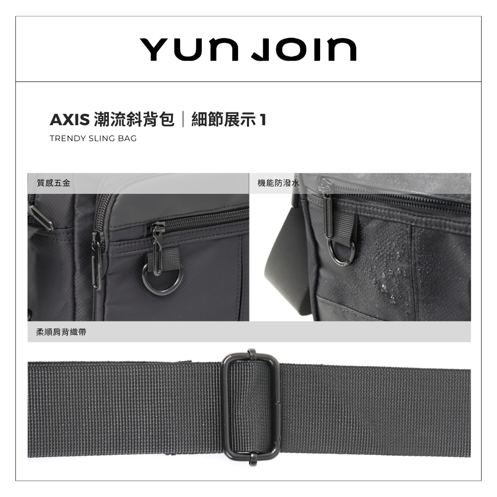 感謝各位蒞臨 YUNJOIN本賣場公司現貨供應且隨訂單由蝦皮代開立電子發票合法登記營業之店家,安全品質有保障~2025 年版本LOGO 皆更換成新款樣式~"AXIS"指「軸」、「中心」或「核心」象徵穩定性、結構與連結的平衡點,展現低調與潮流的完美融合。以 "輕量格子布" 與 "防水材質" 打造,兼具實用性與時尚感,輕便隨行。設有 5 個收納空間,輕鬆整理隨身物品,是通勤與休閒穿搭的理想選擇【產品介紹】●YUNJOIN潮流斜背包總共 5 個收納空間外部 - 主包體分兩層收納,前後各有一個拉鍊袋。前方外側另有一個收納空間。內部 - 後側為拉鍊收納袋。方便實用、素面質感,休閒上班都合適。●材質:尼龍布●結構:側肩包●尺寸:24 * 10.5 * 19 cm (長*寬*高)●顏色:黑色、藍色、灰色 (顏色可能會因攝影或螢幕有些微差異)●重量:210 g#隨身袋 #方便 #實用 #尼龍 #潮流 #肩背包 #斜背包 #斜肩包 #側背包 #公事包 #輕量 #收納 #porter #防潑水──────────────────────────────────────────────────────────────────── 【客服】線上快速諮詢有問題歡迎詢問,專人在線為您服務。若有任何問題或是收到商品時發現異常,可拍照片傳至聊聊客服人員上班時間會馬上為您處理。服務時間:週一至週五09:00~18:00