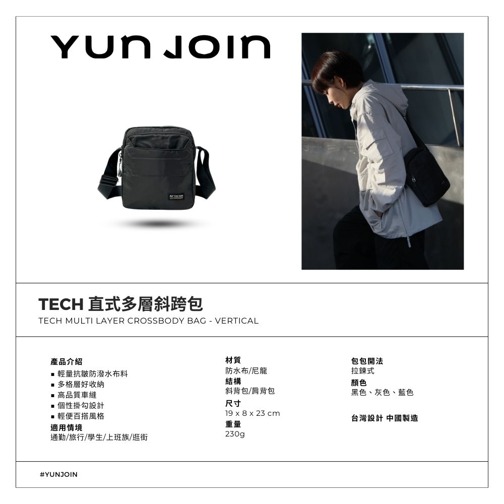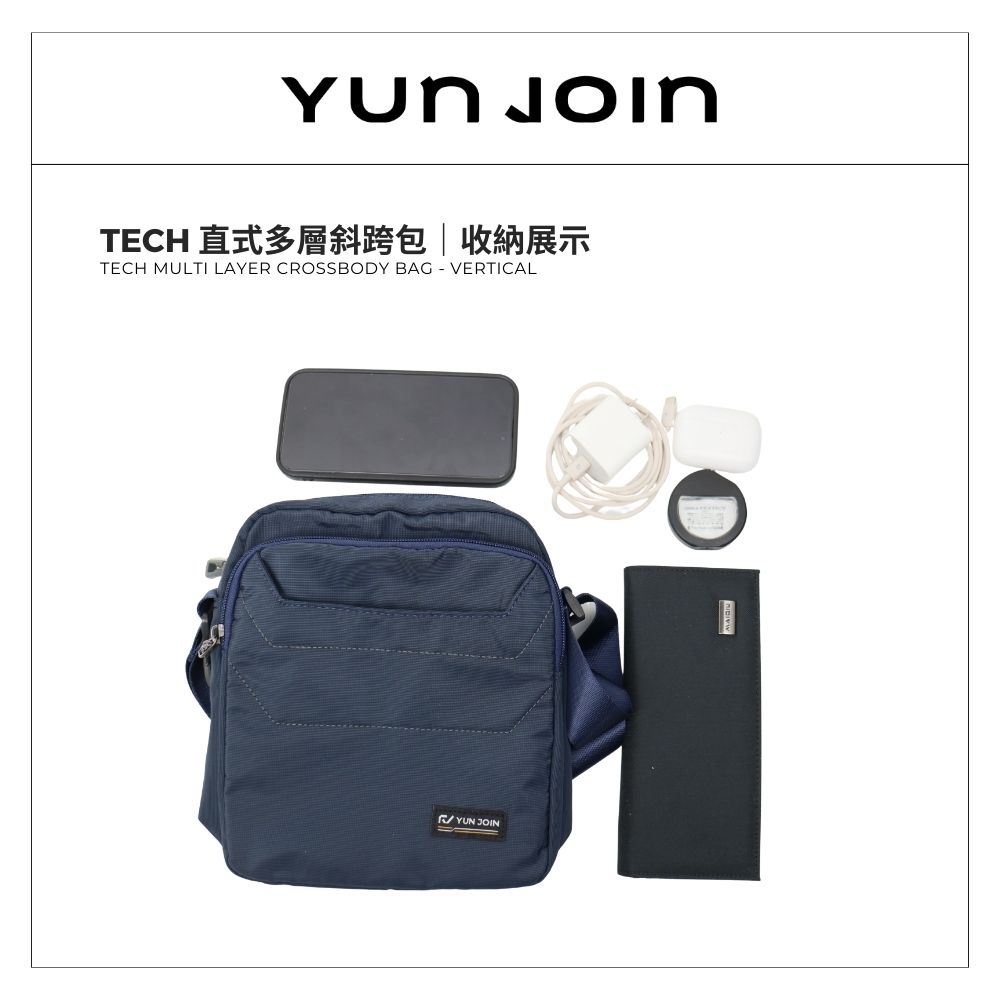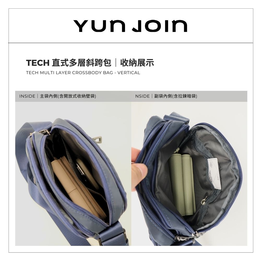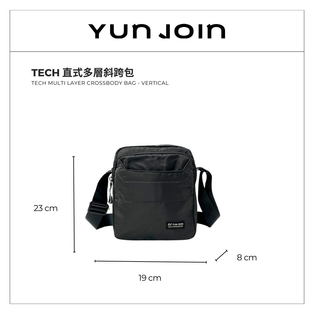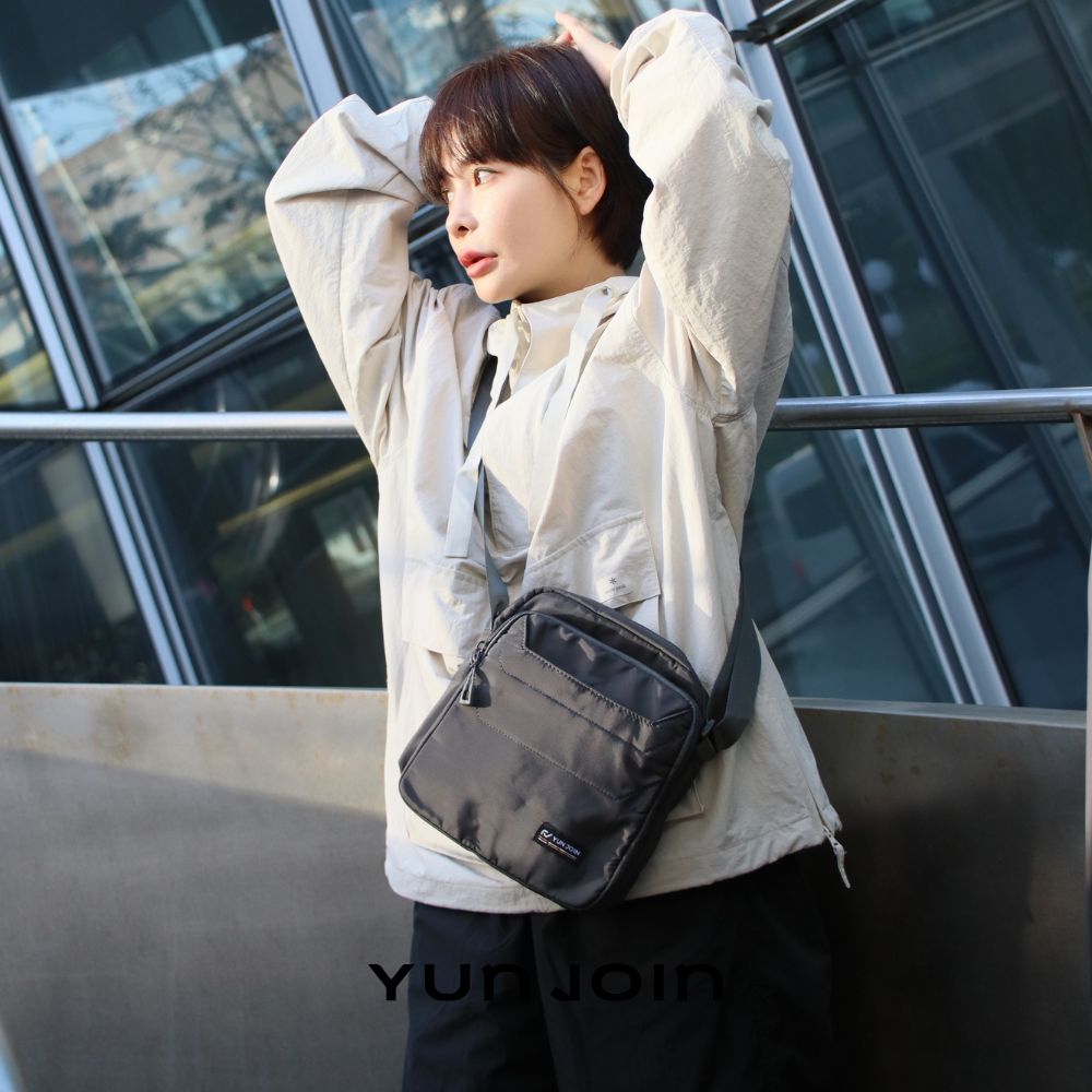 【YUNJOIN】Tech 直式多層斜跨包-灰色 都會小包 側背包 科技布料