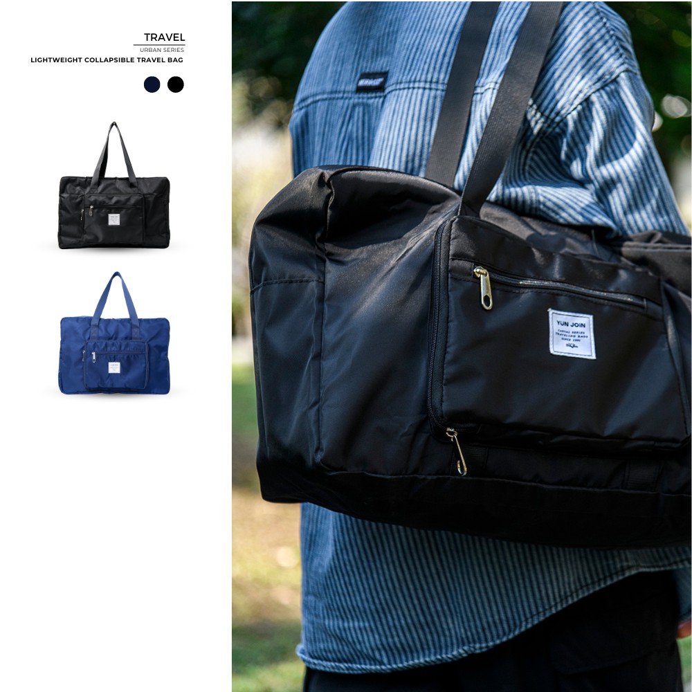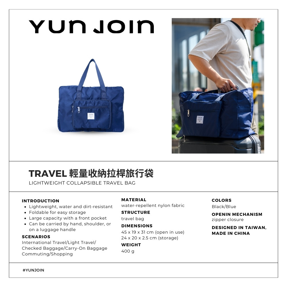 【YUNJOIN】可收納 輕量摺疊旅行拉桿袋-黑色 收納包 拉桿袋 行李袋 耐用 防潑水 旅行袋 登機包 託運行李 旅行包