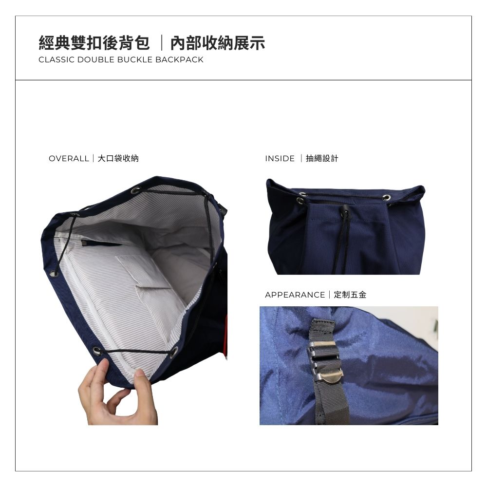 【YUN Select】經典雙扣後背包-藍色 大容量休閒背包 多隔層收納 通勤 雙肩包 男女適用