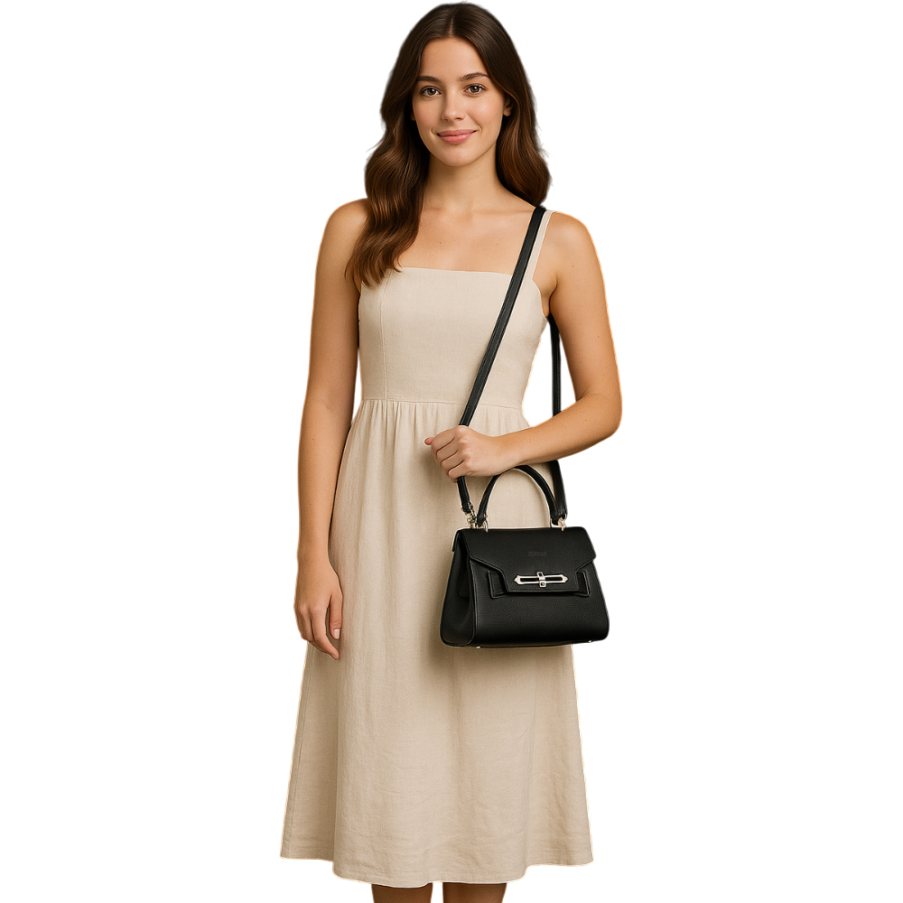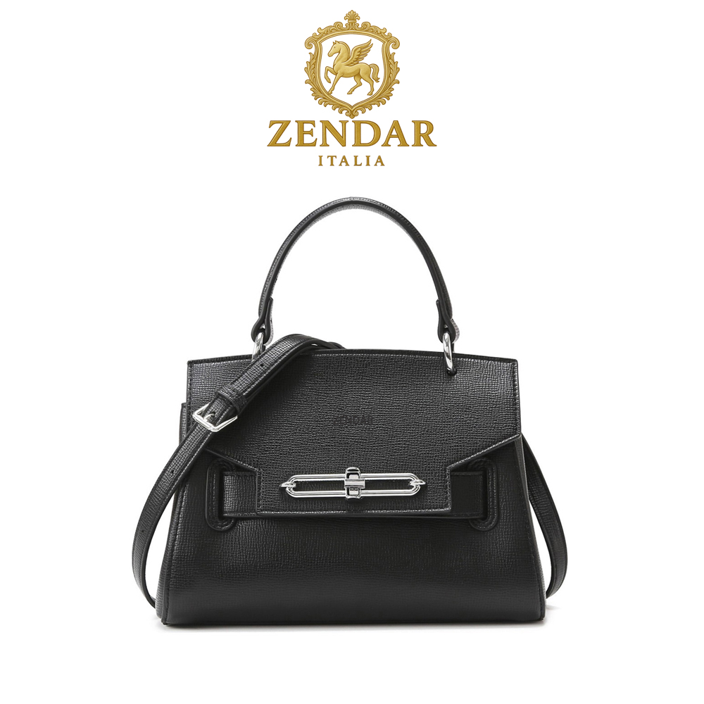 【ZENDAR】限量1折 頂級小牛皮防刮十字紋肩背包手提包 夢特系列 全新專櫃展示品(黑色)