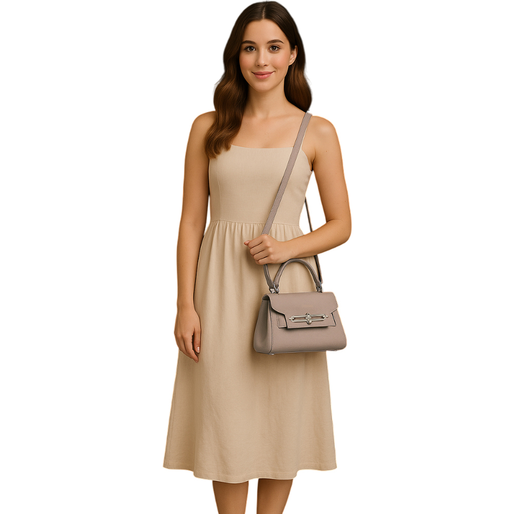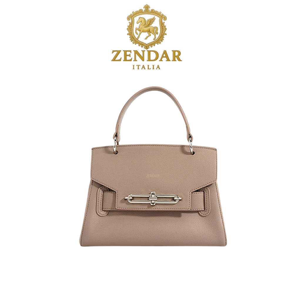 【ZENDAR】限量1折 頂級小牛皮防刮十字紋肩背包手提包 夢特系列 全新專櫃展示品(大象灰)
