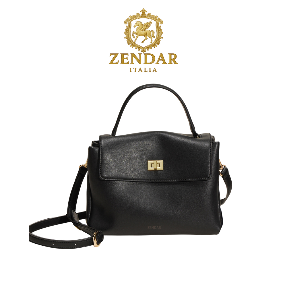 【ZENDAR】限量1折 頂級小牛皮肩背包手提包 喬伊系列 全新專櫃展示品(金剛黑)