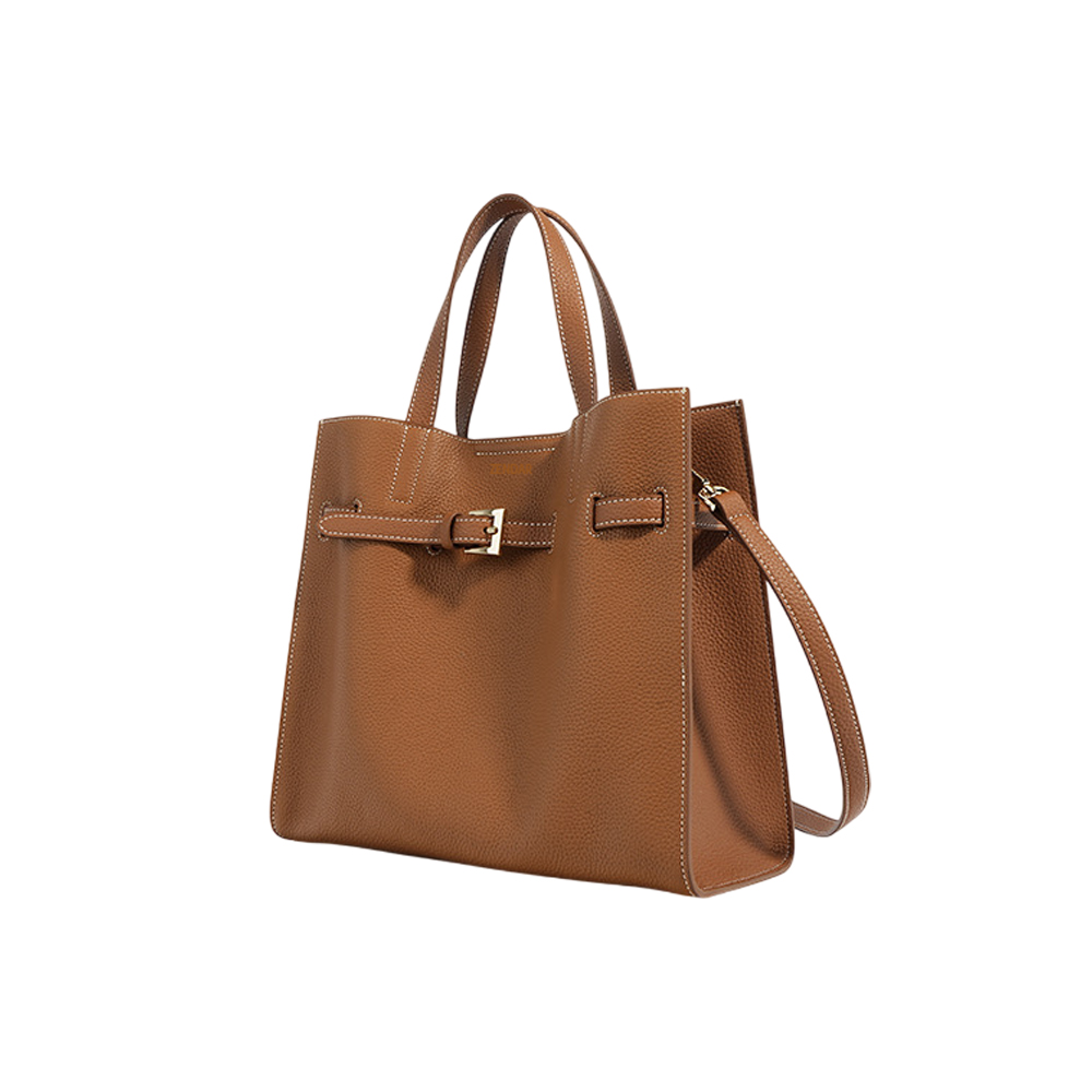 【ZENDAR】限量1折 頂級小牛皮肩背包手提包 瑞絲系列 全新專櫃展示品(琥珀色)