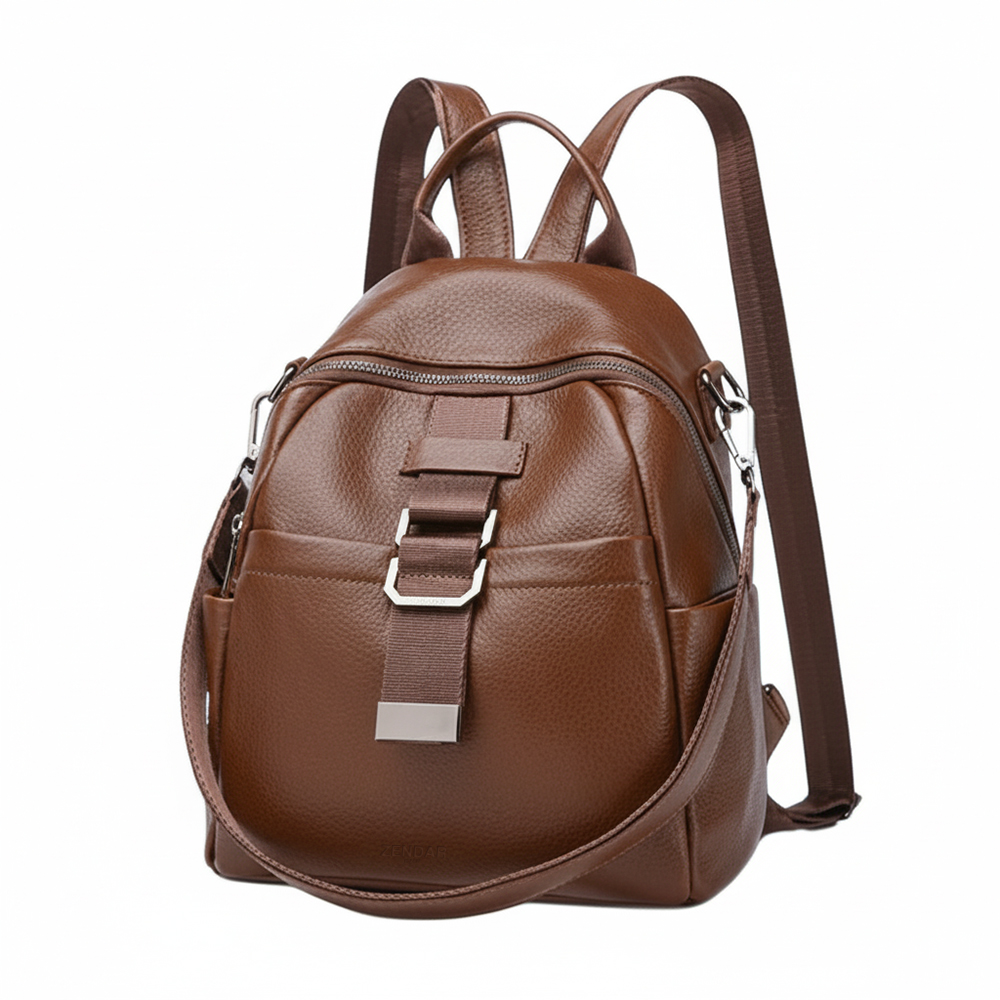 【ZENDAR】台灣總代理 限量1折 頂級超柔軟小牛皮後背包 莉莉系列 全新專櫃展示品(咖啡色)