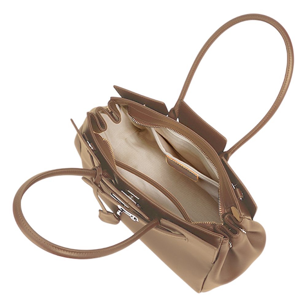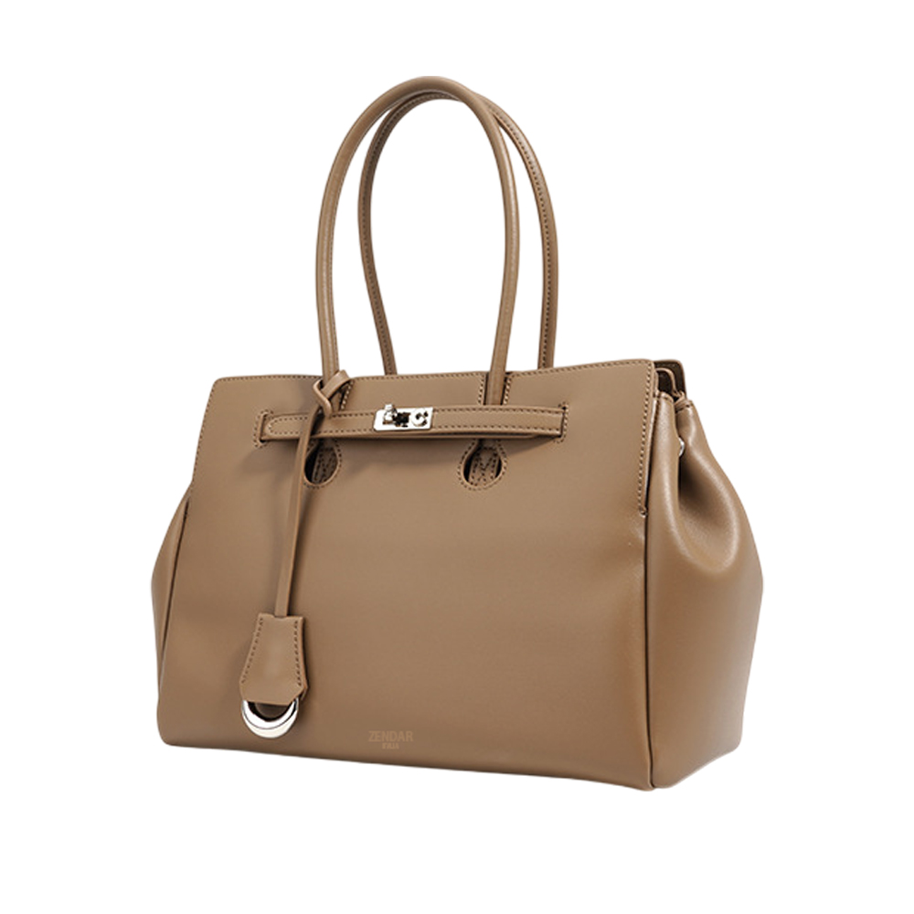 【ZENDAR】限量1折 頂級小牛皮手提包肩背包 葛蕾絲系列 全新專櫃展示品(杏仁棕)