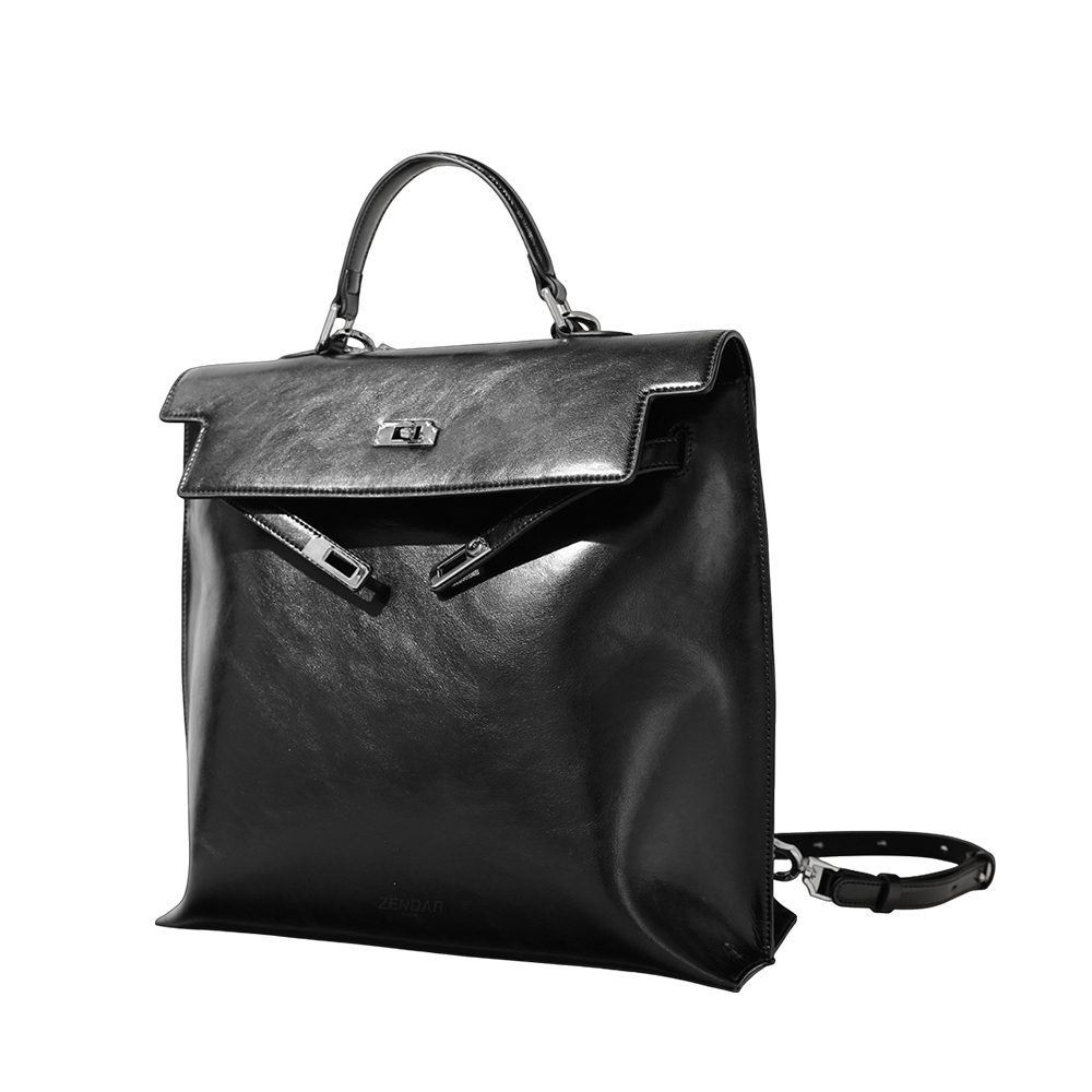 【ZENDAR】限量1折 頂級小牛皮手提包肩背包後背包 維多利亞系列 全新專櫃展示品(金剛黑)