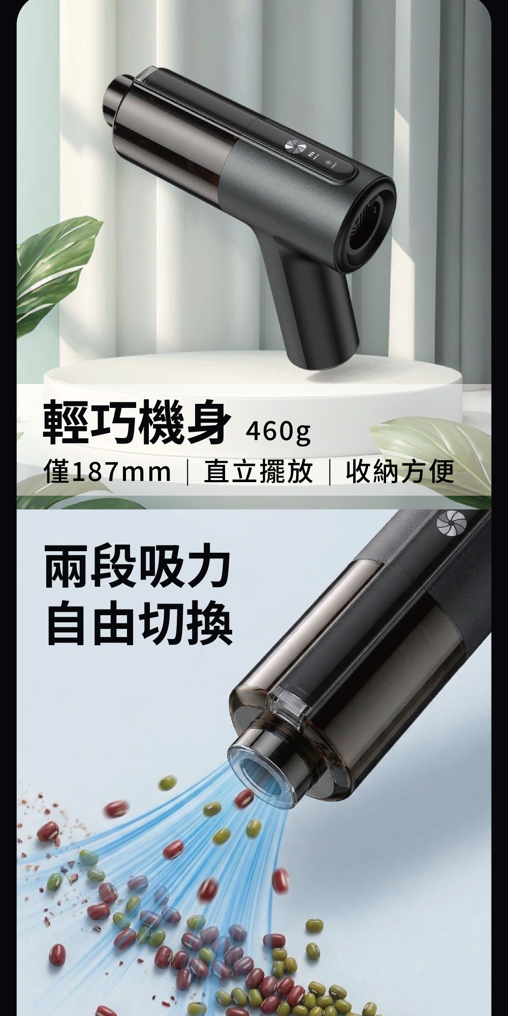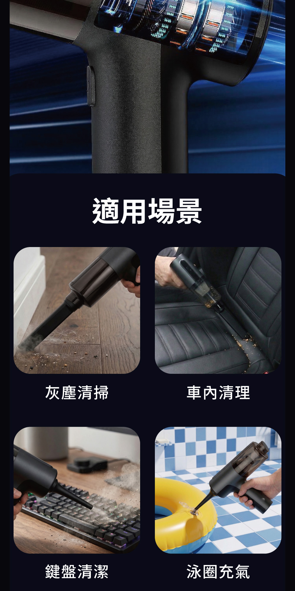 .搭配多款吸頭,車內縫隙、桌面灰塵、鍵盤碎屑都能輕鬆清潔。