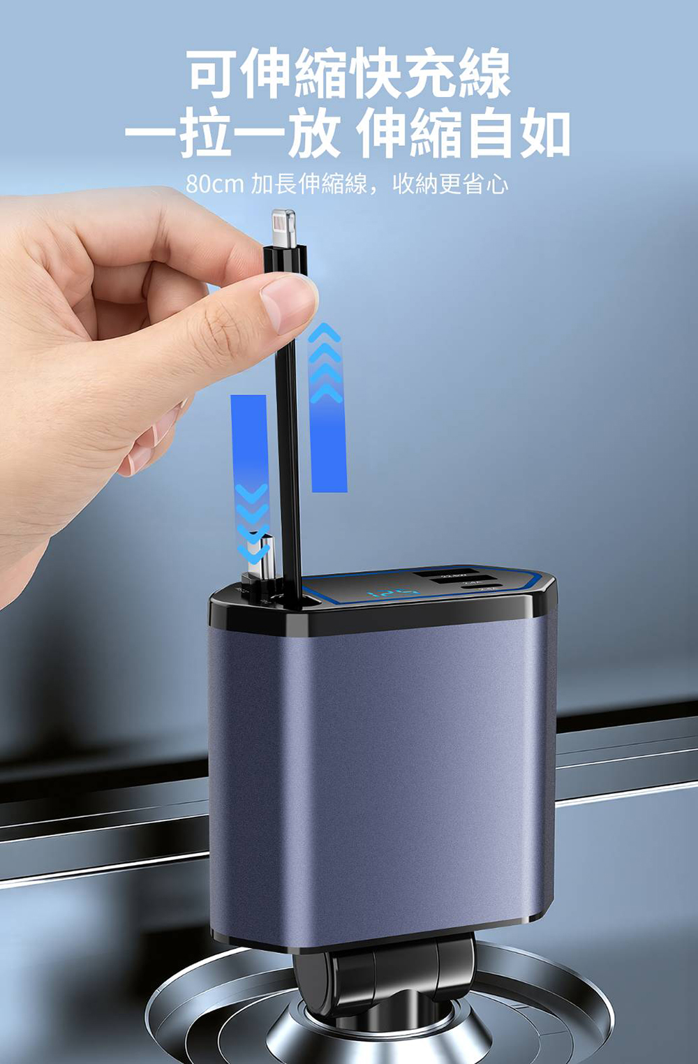 .2組自帶線(Lighting線+Type-C線)長80公分,伸縮自如、自動收納