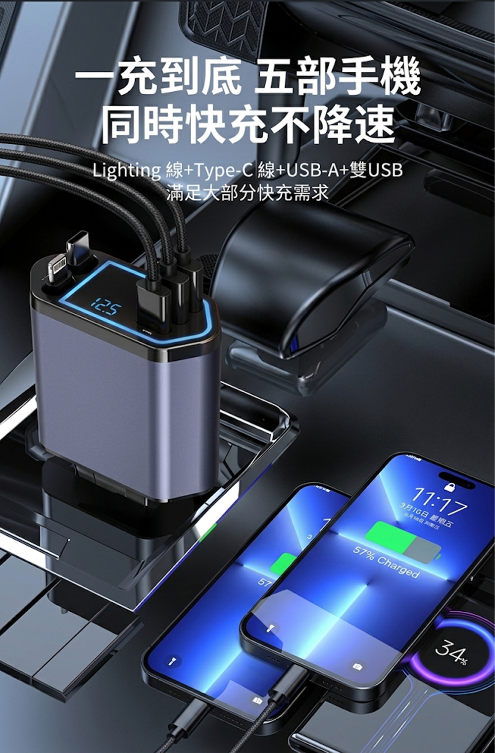 .3孔快充:Type-C+雙USB 滿足大部分快充需求