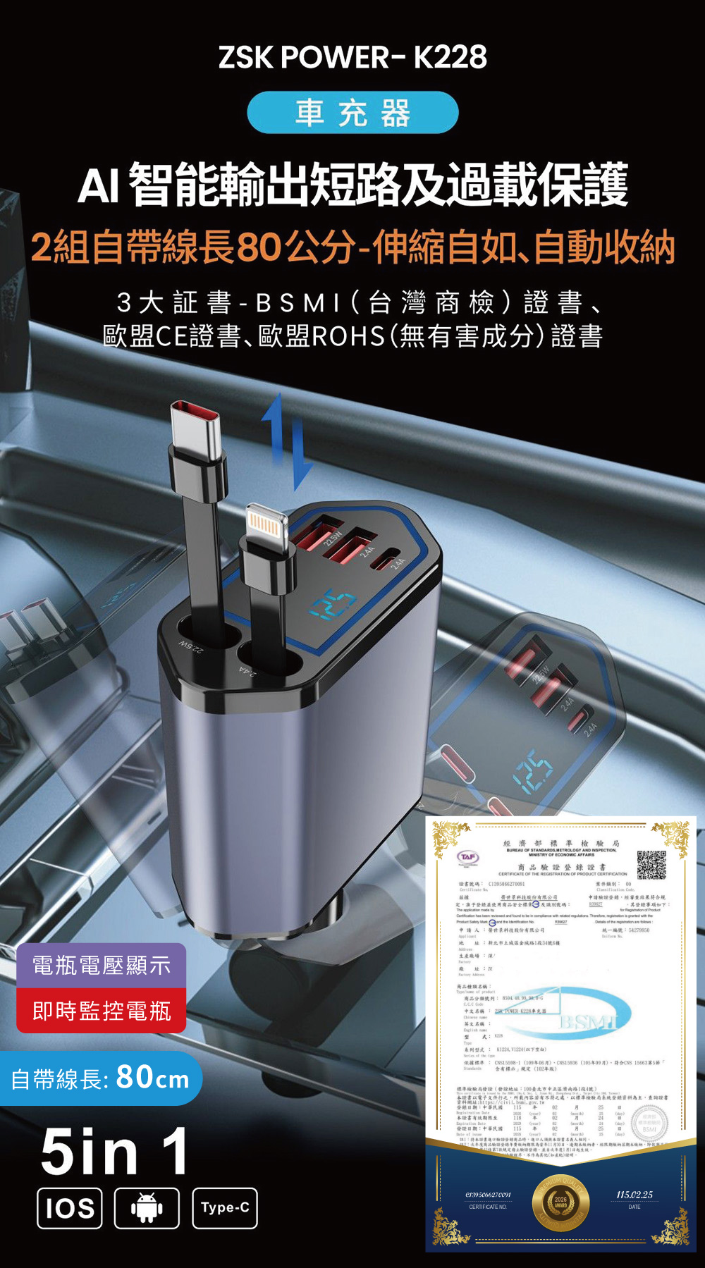 .3大證書:BSMI(台灣商檢)證書、歐盟CE證書、歐盟ROHS(無有害成分)證書