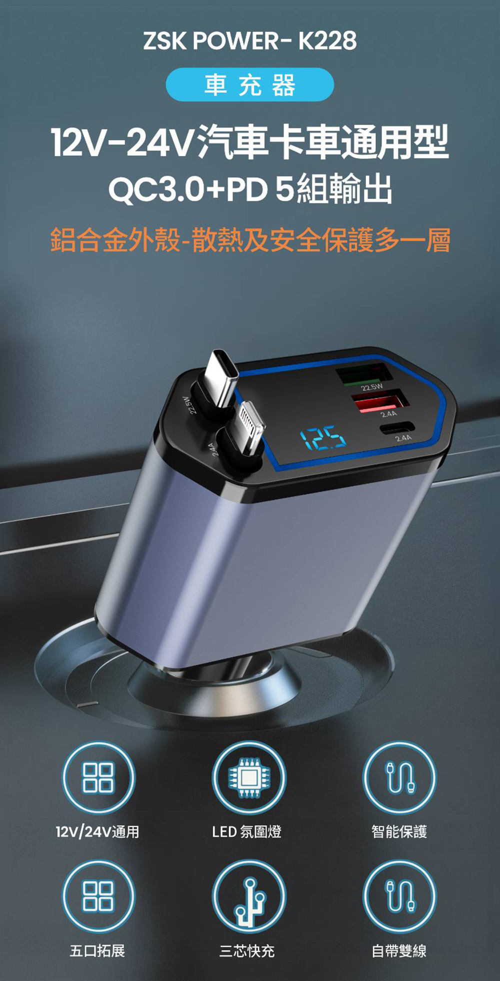 .產品名稱:ZSK POWER K228 3C車充汽車電壓電池檢測器